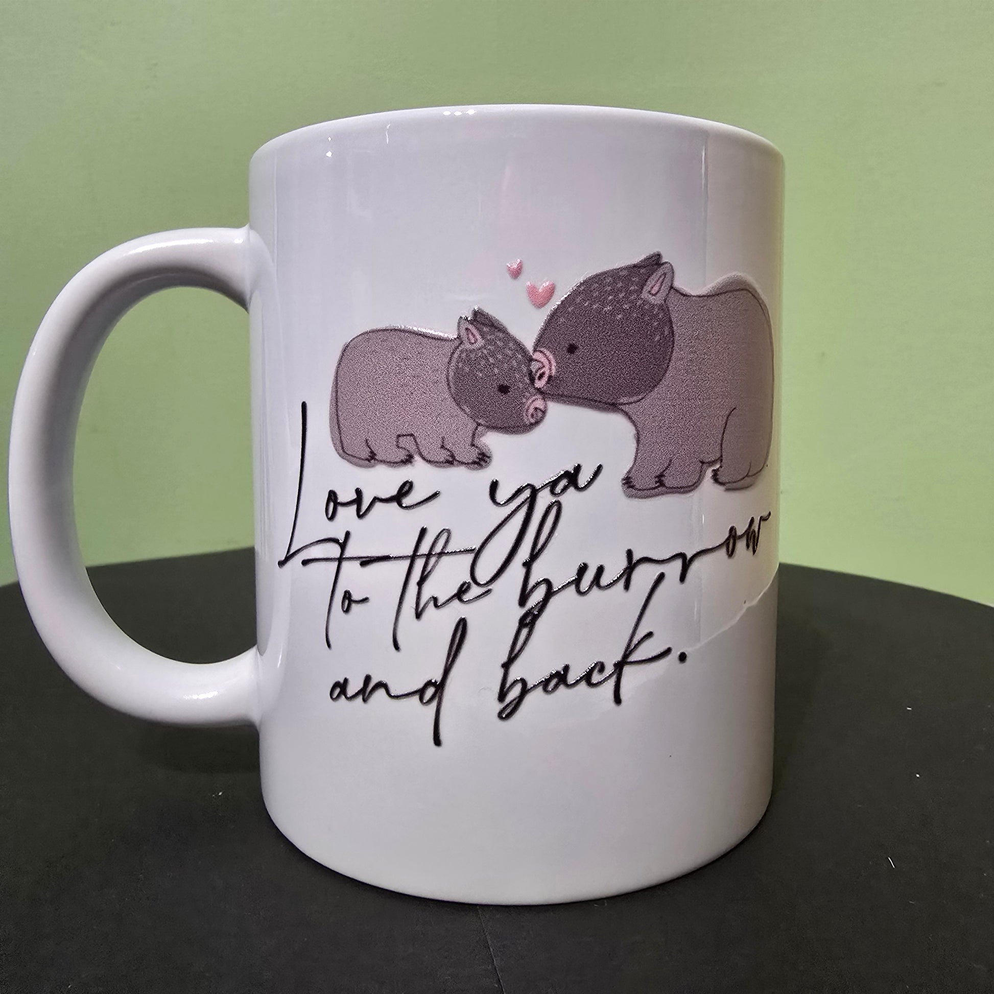 Our Coffee Mugs are cute, whether your planning on drinking Your Morning Coffee, tea or Hot Chocolate or buying as a gift you will love Our new "Love ya to the burrow & Back" designs Created by the lovely Tegan Cooper a Local designer, So grab a mug and DIG our new mugs