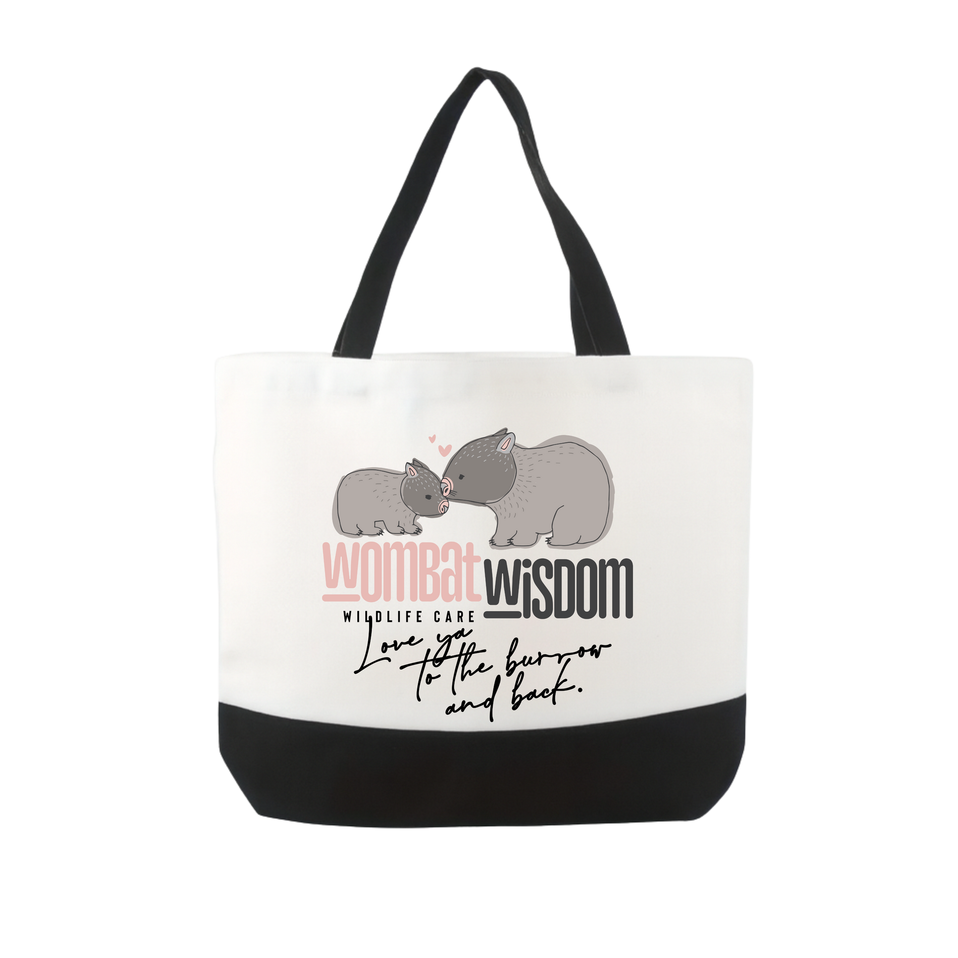 Large Tote Black Bag - Wombat Wisdom Trademark