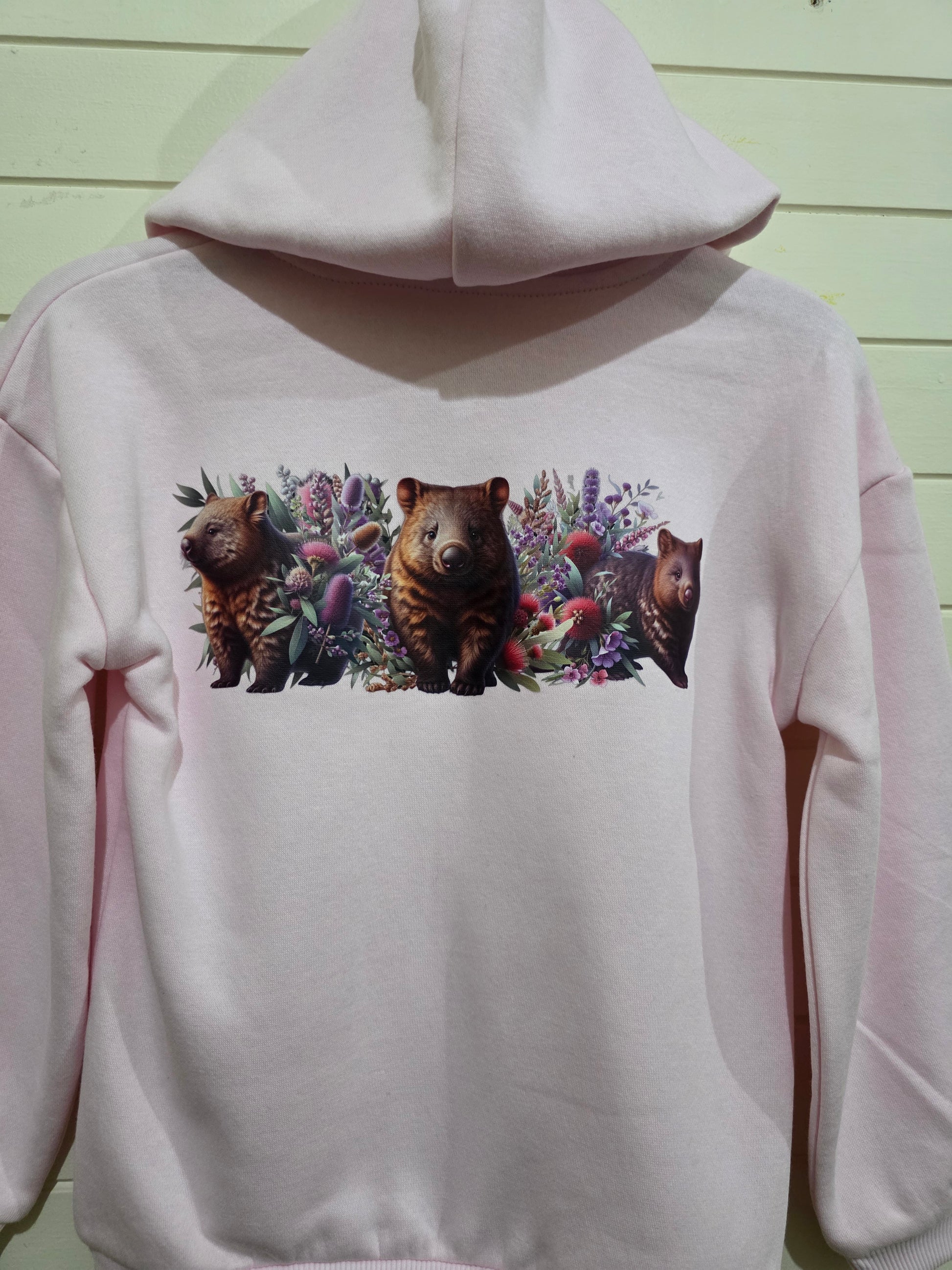 Your Kids will love our Wombat Zipper Hoodies Jackets, they are cute and good quality and come in all different sizes, all profits contribute to the purchase of safe land for our Wildlife to be released on. and the costs of rehabilitating our Wildlife.