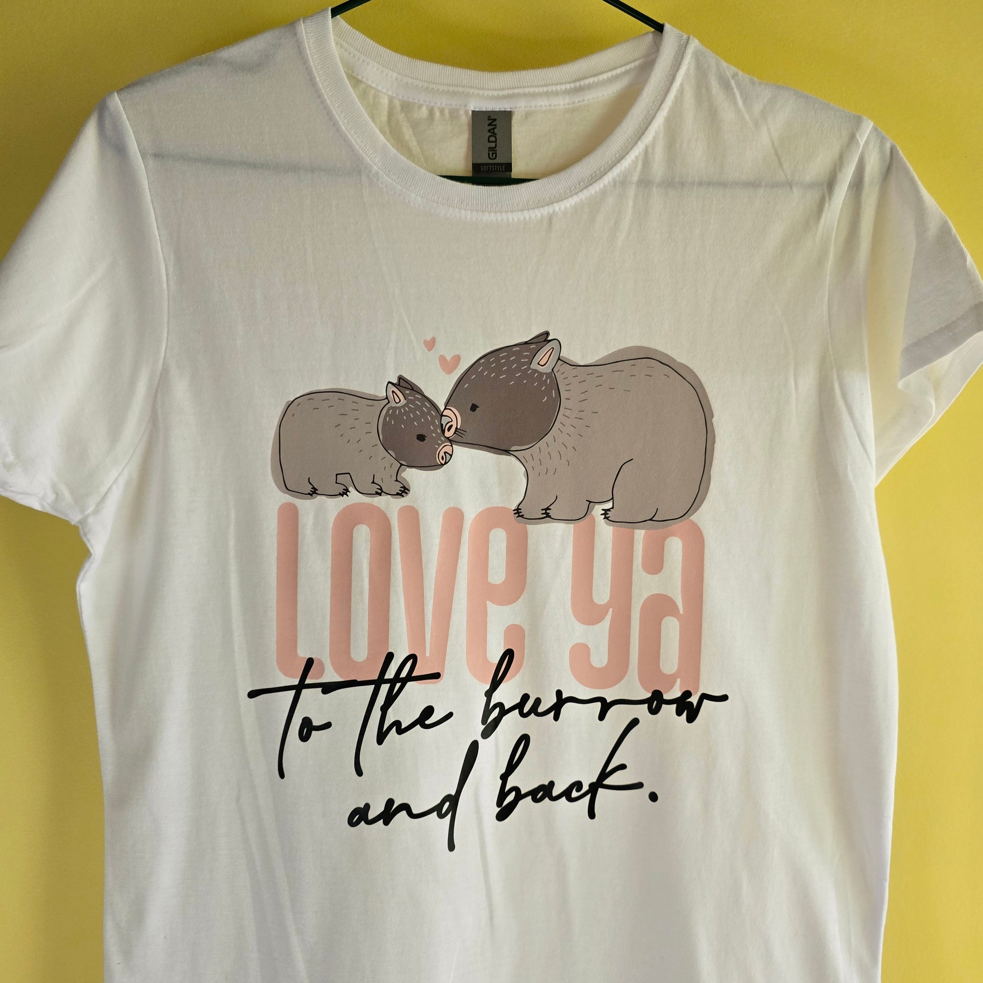 Our Women's T shirt's are beautiful with many different designs and you will certainly stand out in the crowd, created by our very own local designer Tegan Cooper, "Love ya to the burrow and back" is our signature phrase we hope will catch on.