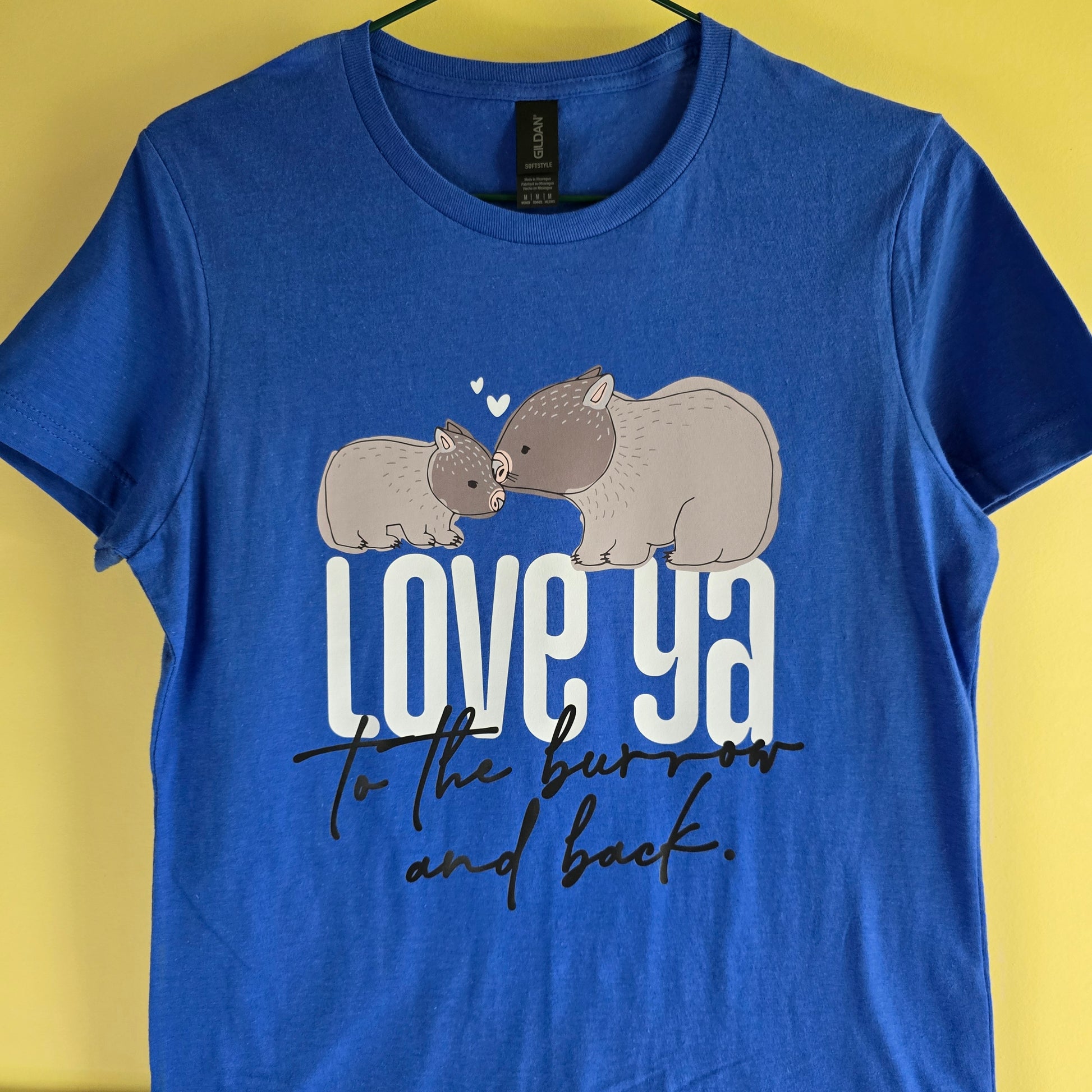 Our Women's T shirt's are beautiful with many different designs and you will certainly stand out in the crowd, created by our very own local designer Tegan Cooper, "Love ya to the burrow and back" is our signature phrase we hope will catch on.